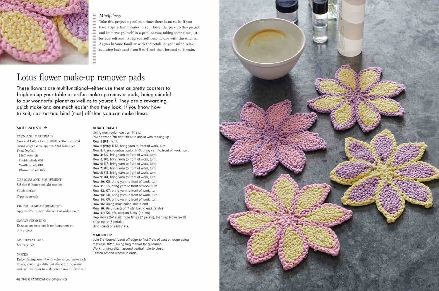 Many of the projects make ideal gifts, bringing you satisfaction and positivity as you knit them for other people. There are also homewares including a mandala pillow and a meditation garland so that you can create an inspiring environment, as well as cozy accessories and garments to allow you to focus on yourself.